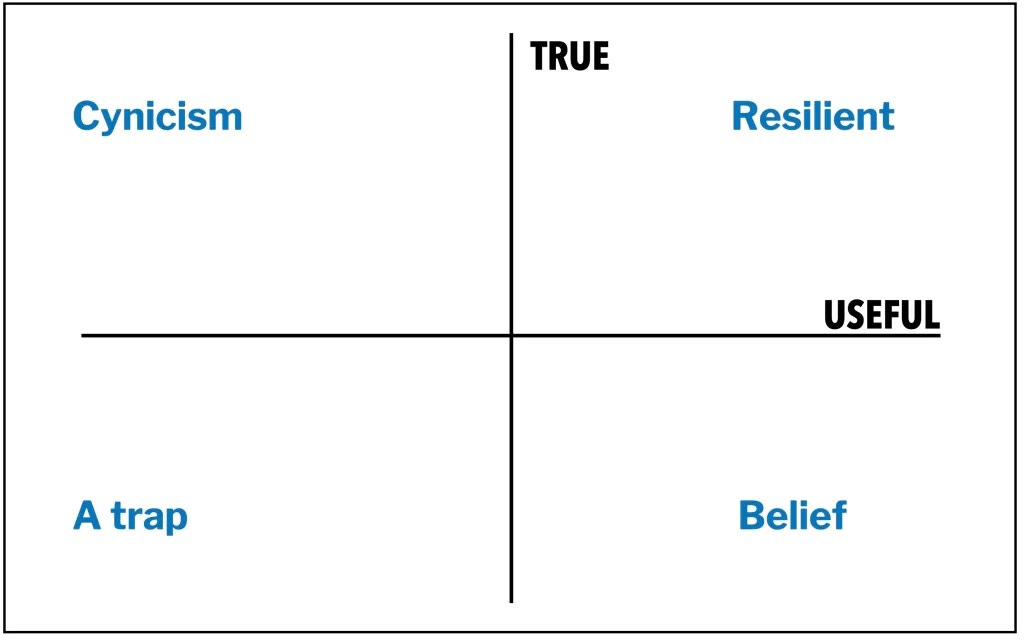 As Godin describes it, we tell ourselves many (internal) stories; this simple 4 quadrant matrix is a quick way to plot your stories. Finding your own truth is important; finding out that something is true but not useful is also important, and like most productivity tools and frameworks, a new view is powerful.